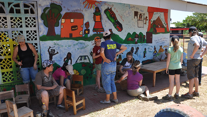 This project was phased over three years. It is a two-classroom building, constructed of rammed earth and reinforced concrete, with steel purlins and corrugated metal roof. It also has an office and comedor (kitchen) at either end of the building constructed of decorated cement block for ventilation.