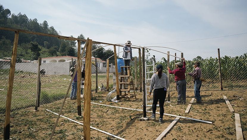 The hothouses are made using posts made from tree limbs, milled lumber cross beams, PVC tubing to support the roof that is made of nylon sheeting, and nylon insect netting that allows for ventilation and humidity control inside the hothouse.